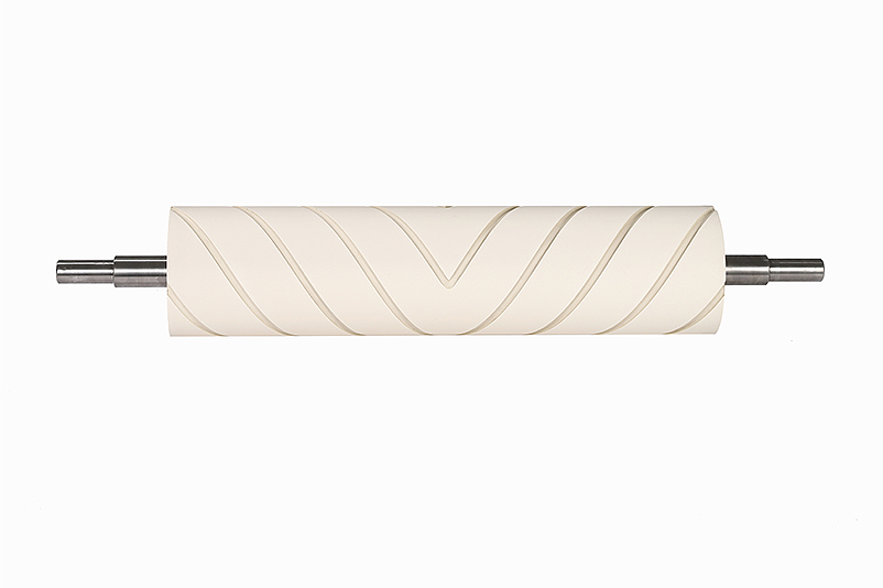 橡胶辊一般由外层胶、内层胶、金属芯、辊颈和通气孔组成,其加工包括辊芯表面毛化、黏合处理、贴胶成型、包布、铁丝缠绕、硫化及表面研磨等工序。